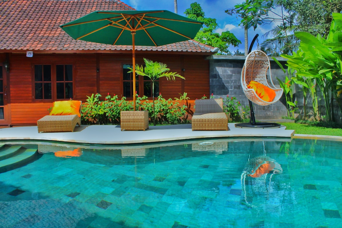Our Awesome Deluxe room Countryside view on second. This modern luxure style double bedroom with shared awesome pool. The property located at touristic site village Kelabangmoding that only 3,5Km from Ubud center. Enjoy our hospitality at Bali's Countryside Ubud Village. Have fun with the whole family at this stylish place. Kick back and relax in this calm, stylish space. Lets be our family and experienced Balinese Living. Our Team will love to service you. SEE YOU
