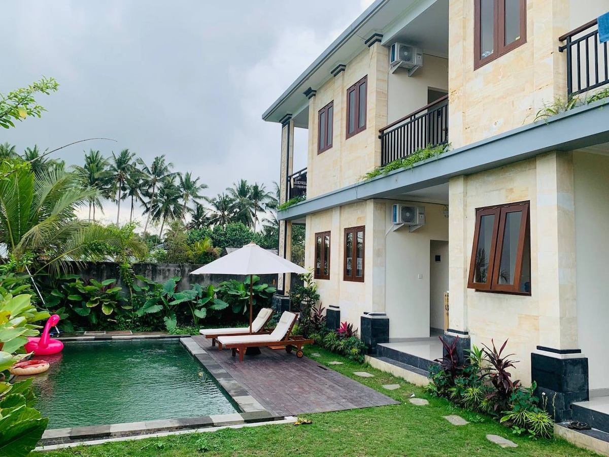Spacious room on the first floor has a private terrace located in a beautiful villa surrounded by ricefield with a large pool and a tropical garden. It is located 3,5 km away from the center. Its Suitable both shorts stays and long term visit. I will so glad to welcome anyone who will stay with us and hopefully can enjoy our bailnese family experiece during your visit .