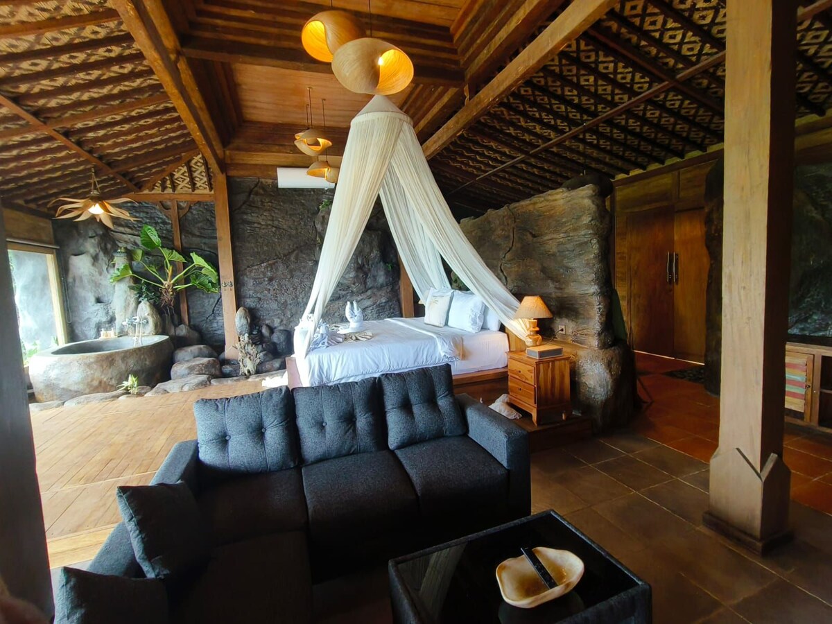 Get your best Bali trip with us this unique and tranquil getaway would make unforgettable experience. we have designed this unique house for Nature Lover, you will feel like you are staying in the nature, most amazing that you can pull your bed in to the balcony were you can enjoying most beautiful sunset and jungle. you also have amazing big worm bath beside your bed (flower bath additional charge) you have Swing and hammock as well. you have also a private natural disign of pool.