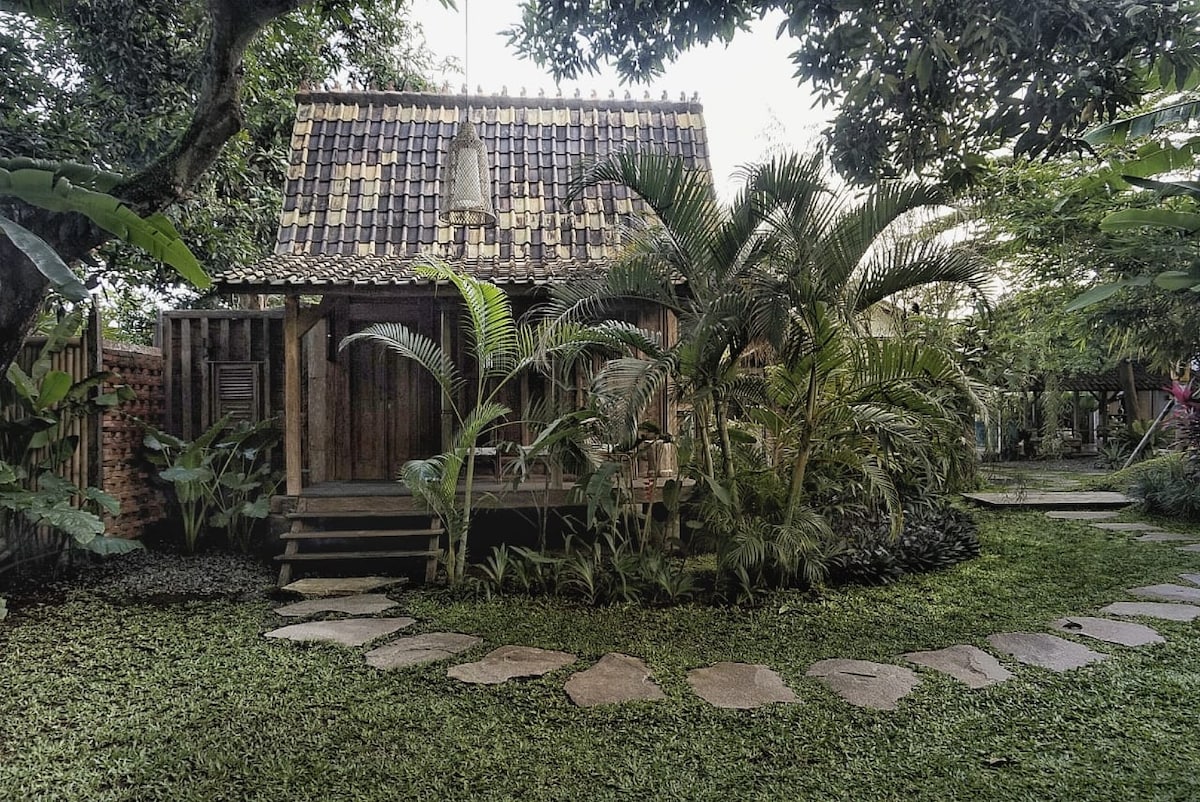One Bedroom wooden house with ensuite open bathroom, the wall and floor design by abstract nature stone. Open kitchen with Kitchenette and basic kitchenware . Big garden with outdoor shower garden, large private swimming pool with sun deck . The house located in Penestanan Kaja village, within 15 or 20 minute walk to Blanco Museum, Ubud Palace, Ubud Center, Ubud Market and Monkey Forest. enjoy your stay with us by floating breakfast by the pool, it special on request