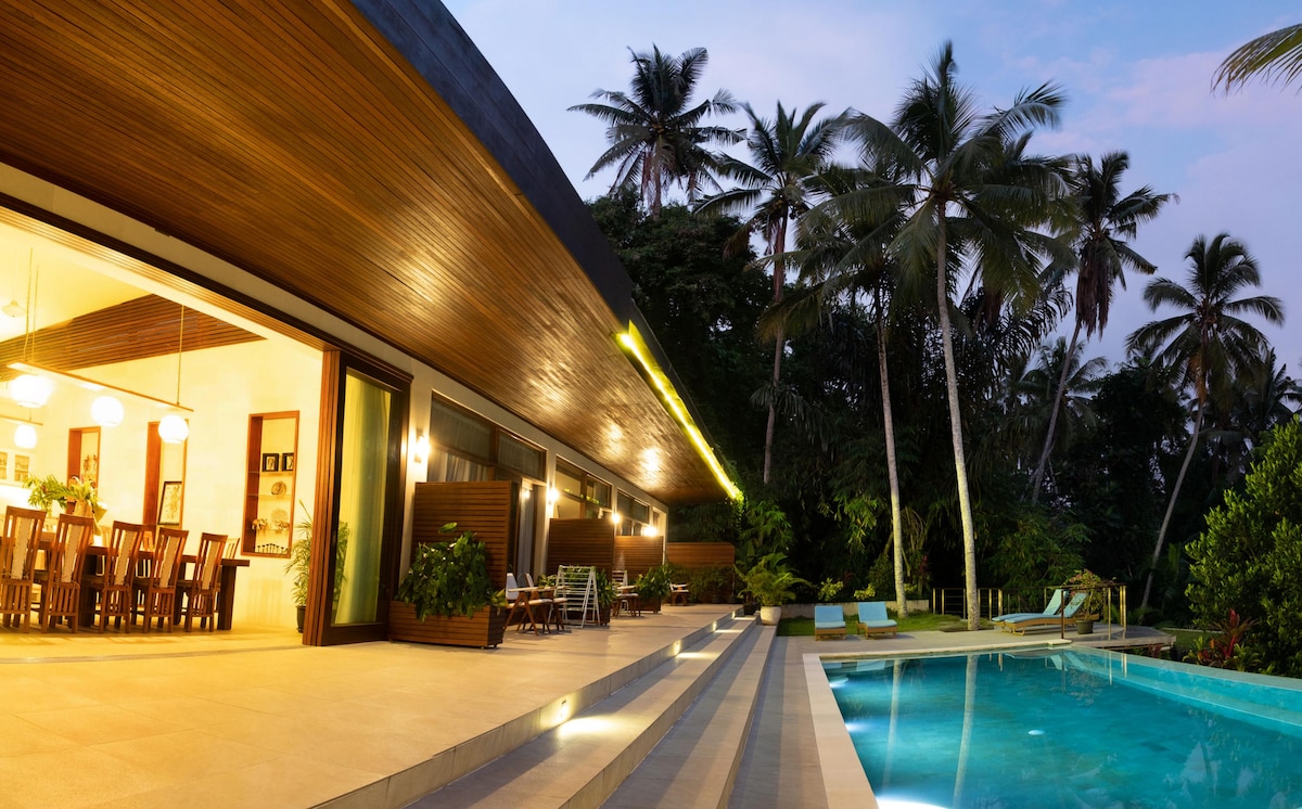 宁静的家庭度假屋,带丛林无边泳池