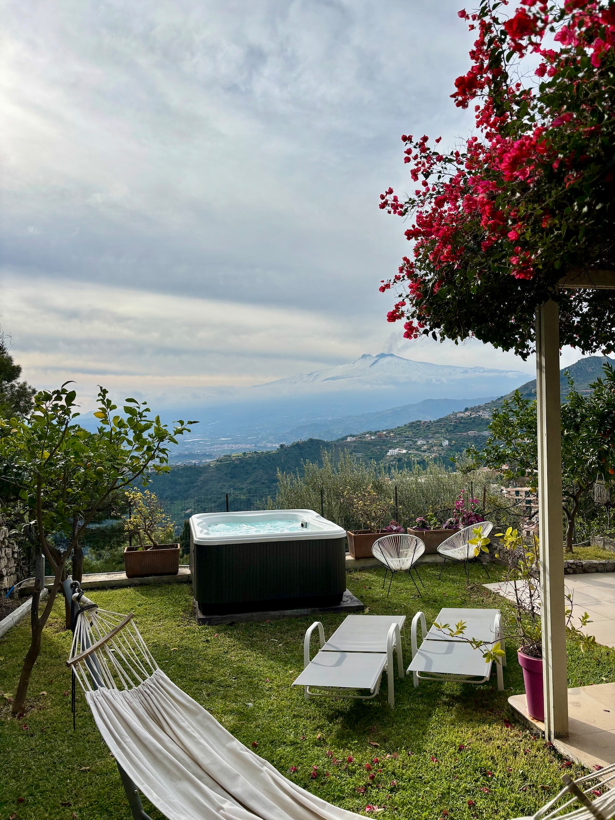 Meraviglioso giardino privato con vasca idromassaggio jacuzzi, affacciato sull’Etna e sulla baia di Taormina. Una vera oasi di quiete e relax a soli 7 minuti a piedi dal centro di Taormina. All’interno, appartamento indipendente di circa 60 mq, con camera da letto luminosa, open space dotato di cucina attrezzata e bagno spazioso pensato per il massimo comfort. È dovuta l’imposta di soggiorno del Comune di Taormina di € 3 a persona per notte da pagare all’arrivo.