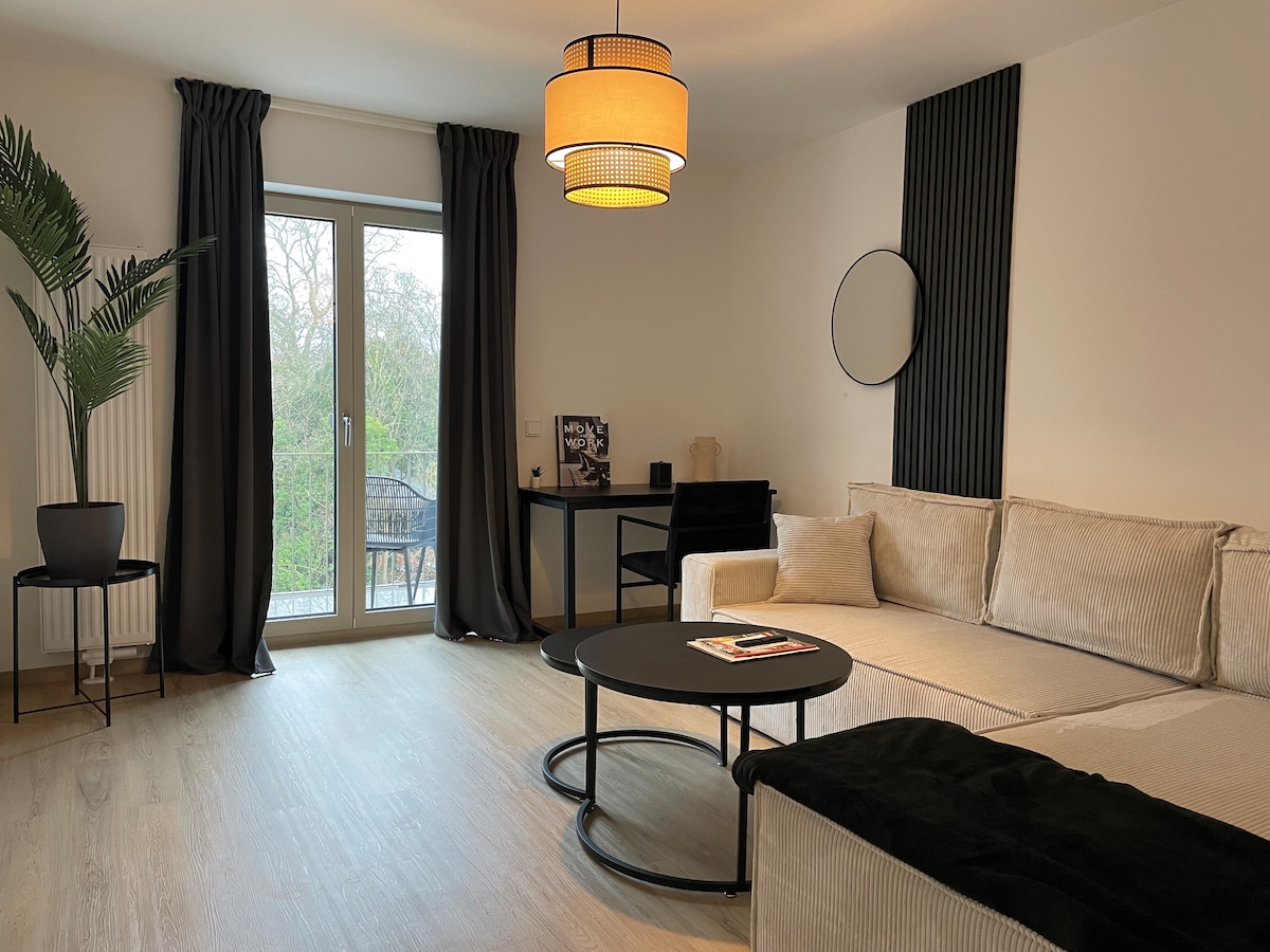 Stilvoll gestaltet, bietet unser Apartment eine zentrale Lage. In 15 Gehminuten bist du in der Innenstadt, eine Bahnhaltestelle liegt 2 Minuten entfernt. Ein ausgestatteter Arbeitsplatz und schnelles Internet ermöglichen produktives Arbeiten. Die Küche ist komplett eingerichtet, und das gemütliche 1,40 m breite Boxspringbett lädt zum Entspannen ein. Bettwäsche, Handtücher und weitere Essentials sind natürlich vorhanden. Der Smart-TV bietet Zugriff auf viele Apps wie Netflix, DAZN und YouTube.