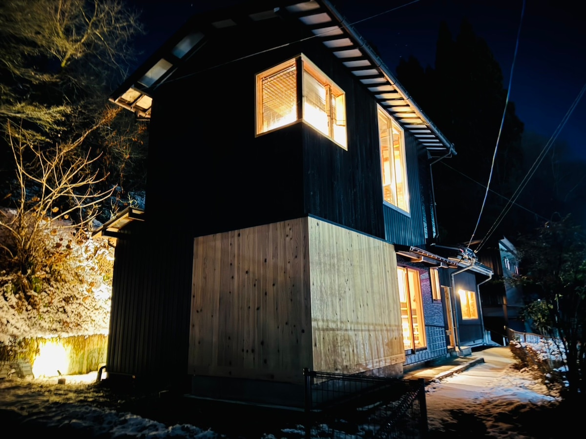 It is a log house in Hakusan city .you can use outside bath and inside bath are use natural hot spring. About this area, Recently it has been certified as a UNESCO Global Geopark.There are national parks, ski resorts, hot spring Places ,organic restaurants and cafes nearby. It is also about 30 minutes to Kanazawa, and has good access to the World Heritage Site and Shirakawa-go. I have Eabikes, , so even if you don't have a car, you can enjoy this area. Pleaee have a relaxing time in here !