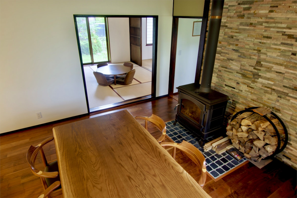 äŒçµ±çãªæšé 建ç¯ã®å®¶ããªãããŒã·ã§ã³ãã空éã§ãã£ãããã€ããã§ããã ããŸãã å¬ã¯èªã®ã¹ããŒããå€å Žã¯ãšã¢ã³ã³ããå©çšã§ããŸãã å€ã¯æ²¢å±±ã®æã ãæµãæãèŠããŸãã å宀ãªãã§ã¯ã®ãåºã®éãããçæŽ»ã®ãªãã«ããéããšãã空éããã¶ã€ã³ããŠãå£ç¯ã®è±æšãé£Ÿãæ¥œããã å ŽããããŸãã æ¯æãåžæã§ããã°ãæž©ããæé£ããæã¡ããŸãã ãããã³ãå©çšããŠé£äºãäœã£ããã§ããŸãã 調çåšå ·ãåºæ¬èª¿å³æïŒæ²¹ãå¡©ãè¡æ€ïŒã¯çšæããŠãããŸãã åºã§BBQãæ¥œããã ãïŒããŒããã¥ãŒã³ã³ããçã貞åº1500åïŒ æ¬æ Œçãªåé£ããåžæã®æ¹ã¯éè¿ã€ãã® ãäºçŽãããããŸãã ããžã¿ãªã¢ã³å¯Ÿå¿å¯èœãªã¬ã¹ãã©ã³ãã玹ä»ã§ããŸãã ãŸãäžå±±éãã¬ã€ã«ãããæ¹ã¯åŠ»ç± ãŸã§éè¿ãµãŒãã¹ãã§ããŸãããçžè«ãã ãã ãã¡ãã®å®¶ã建ãŠãããã®ã¯60幎åã æã£ãŠããå±±ããåãåºããæšæã䜿ã建ãŠããããã®ã ç°å¢ã«é æ ®ããBenjamin Moore瀟ã®ãã³ãå¡ã£ããããŠãªãããŒã·ã§ã³ãããŸããã å®¶å šäœã®åºã¯ãæªã®ãããŒãªã³ã°ã ã²ã¹ãã«ãŒã ã«ã¯OSMOã®èªç¶å¡æã䜿çšã å£ã¯è·äººãä»äžããŠãããŸ