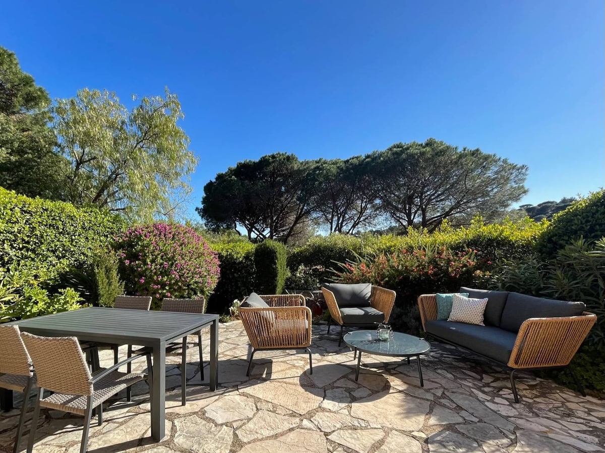 Charming, recently renovated, air-conditioned 50m2 ground-floor apartment located just 5 minutes' walk from the famous Gigaro beach and hiking trails. Take full advantage of the apartment's garden, where you can enjoy your meals on the shaded terrace under the loggia or the large pine tree. With its private parking space, magnificent swimming pool and 3 tennis courts in the residence, and high-speed internet access, this apartment is the ideal place for your vacation in Gigaro!