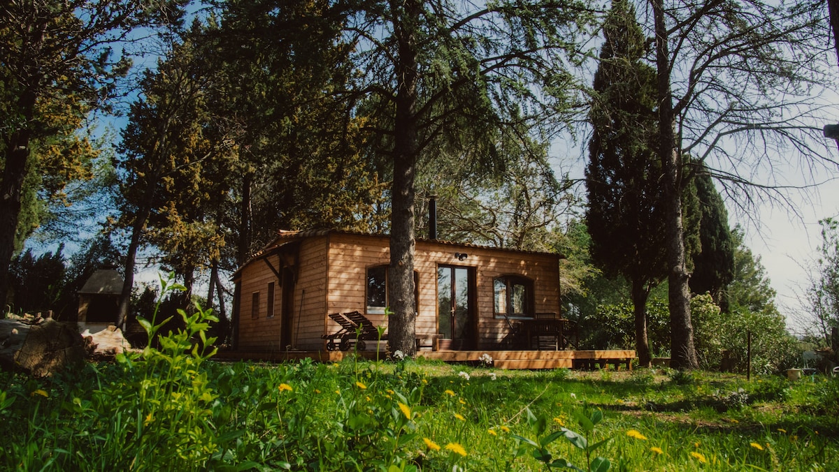 Cabane au sein d'un domaine arboré Mont St Clair, avec une terrasse vue sur la ville, le port et la mer à l'abri des regards en 2 espaces privatifs reliés par un escalier extérieur. Niveau inférieur fermé : Chambre 12m2 avec lit 160, toilettes Niveau supérieur : Salle d'eau douche, cuisine d'été de 6m2, ouverte sur une terrasse de 8 m2 avec table Buanderie commune avec lave linge et sèche linge Accès piscine collective ( non chauffée) de 09h à 19h. Parking gratuit sur place pour 1 véhicule