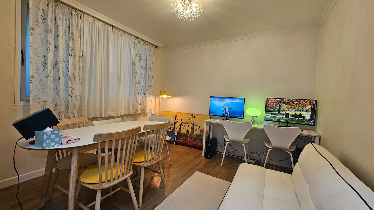 ์ ํฌ ์ง์ ์ ๋ง์ด ์ข๊ณ ์ ์์ด ์๋ฆ๋ค์ด ๋ชจ๋ ํ์ฐ์ค ์ ๋๋ค. ๋์์ด๋๊ฐ ์ค๊ณํ์ฌ ์ง ๋ด๋ถ๋ ์๋ฆ๋ต์ต๋๋ค. ์์คํ ์ฌ๋๋ค๊ณผ ๋จธ๋ฌผ๊ธฐ ์ข์ ๊ณณ์ ๋๋ค (3๊ฐ ๋ฐฉ, 3๊ฐ ํ์ฅ์ค, ๋ค๋ฝ๋ฐฉ, ํ ๋ผ์ค์ ๋ฃจํํ) ๊ฒฝ๊ธฐ๋ ๊ด์ฃผ์ ์์นํ์ง๋ง ์์ธ์๋ ๊ฐ๊น์์ 30๋ถ ์ ๋๋ฉด ์ ์ค์ ๋์ฐฉํ๊ตฌ์. ํ๋ด์ฒ๋ ์์ฃผ ๊ฐ๊น์ต๋๋ค. Our house is a modern house with a great view and a beautiful garden. The interior of the house is also beautiful because it was designed by a designer. It is a great place to stay with loved ones (3 rooms, 3 bathrooms, attic, terrace and rooftop). You can get to Jamsil in about 30 minutes. Hwadam Forest is also very close.
