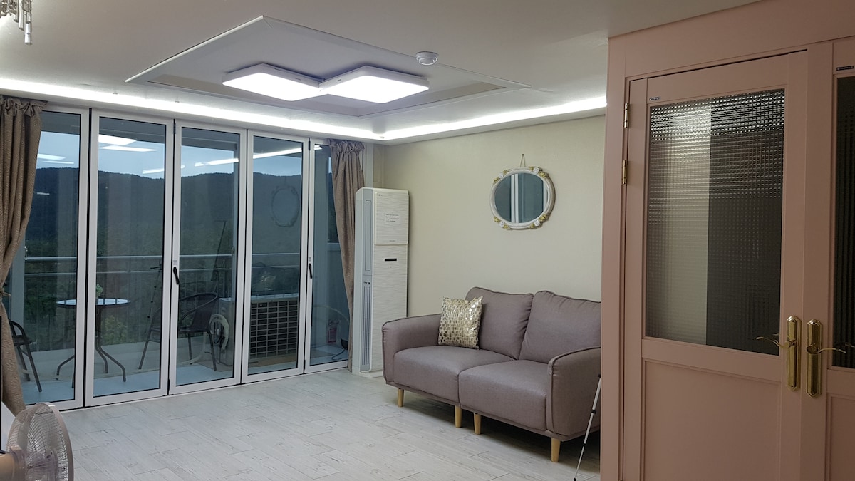 【合法住宿】光安里超级海景/3间客房(客厅+ 2间客房)/3张标准双人床/光安大桥/7人20平米/Netflix/免费停车
