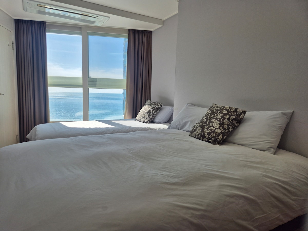 釜山#海云台#步行1分钟#海景#胶囊列车#蓝线公园#免费停车#LCity#酒店床上用品#自炊#3床