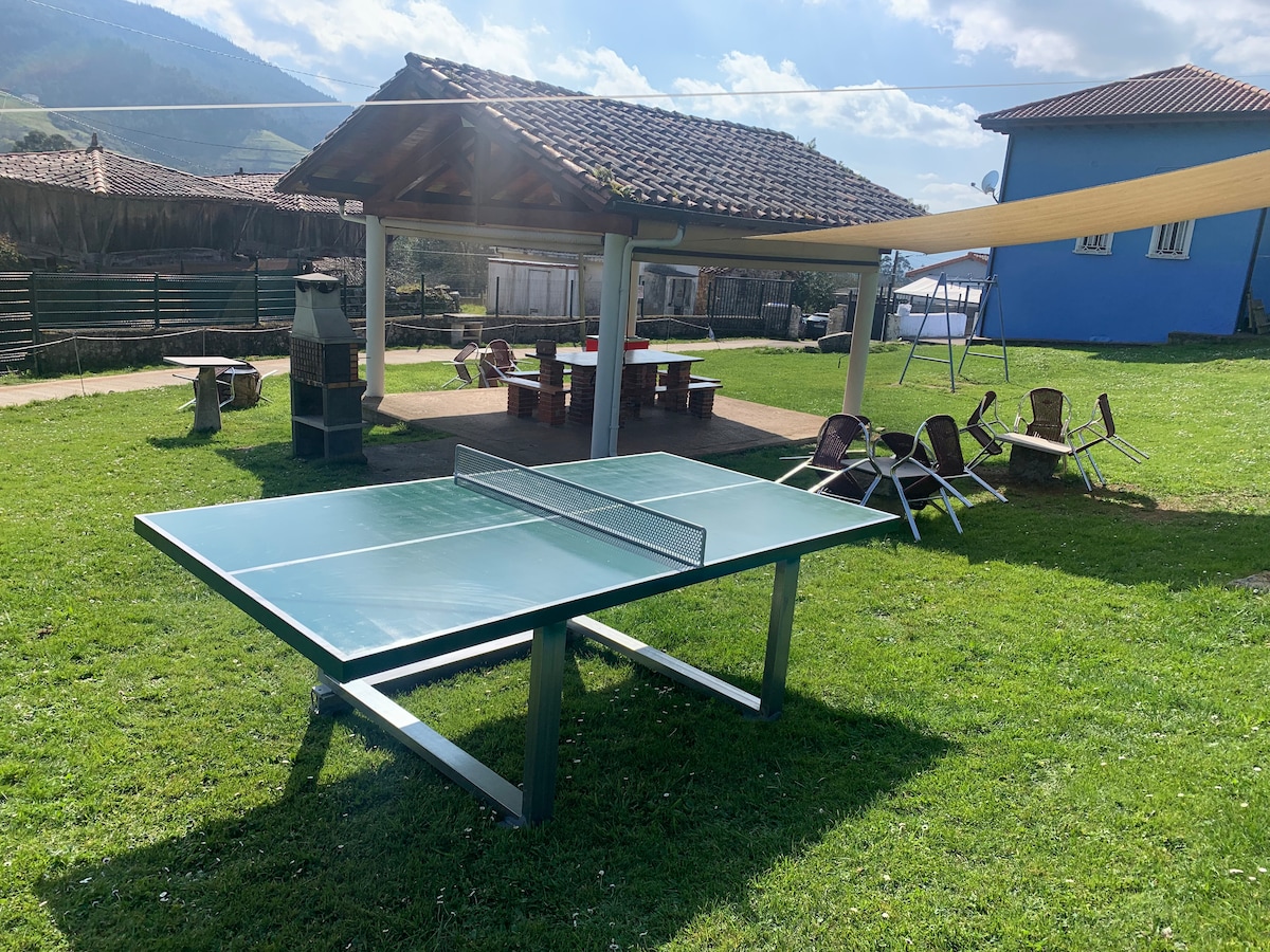 Nuestra relajante y tranquila casa esta situada a 12 km de la entrada de Gijon y 13 de Oviedo En una zona totalmente rural ,tenemos vacas,hórreo, en los exteriores además de la zona de mesa y bancos de debajo del hórreo,tenemos una cocina comedor "l'ayalga"equipada con:vitrocerámica portátil, microondas, nevera, alacena con todo tipo de menaje,agua caliente,fregadero ,mesa y sillas.Todo este equipamiento se puede utilizar también para cocinar en la zona de debajo del horreo. VV2300AS