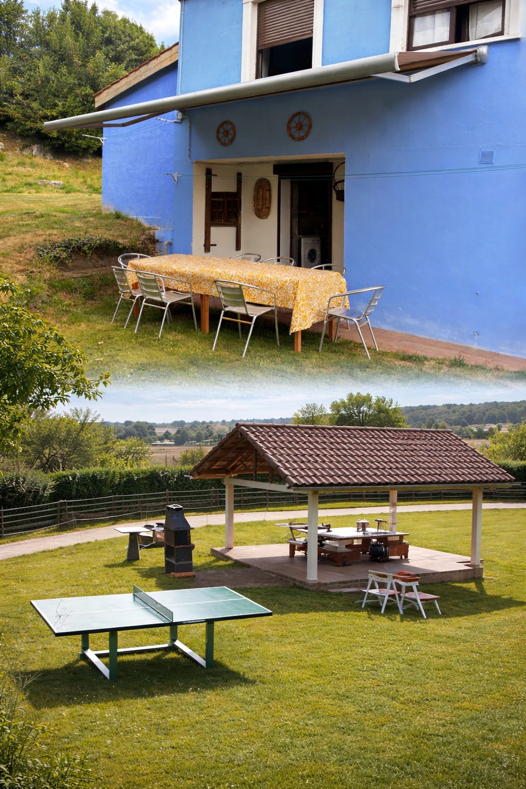 Finca con excepcionales vistas a Gijón. Chalet principal y apartamento adosado independiente (con cocina ) a 4 minutos de la ciudad en coche. Una sola planta . Amplio y diáfano, sin escalones , ideal para familias que viajan con mayores (adaptado) o con niños. Cuenta con un espacio para mascotas en el jardín, barbacoa , wifi , Ping pong , cinta de correr. Ubicado cerca de playa España, del golf La Llorea de Gijón , Laboral Centro de Arte y salida a autopista. Parada de autobús urbano a 150 m.