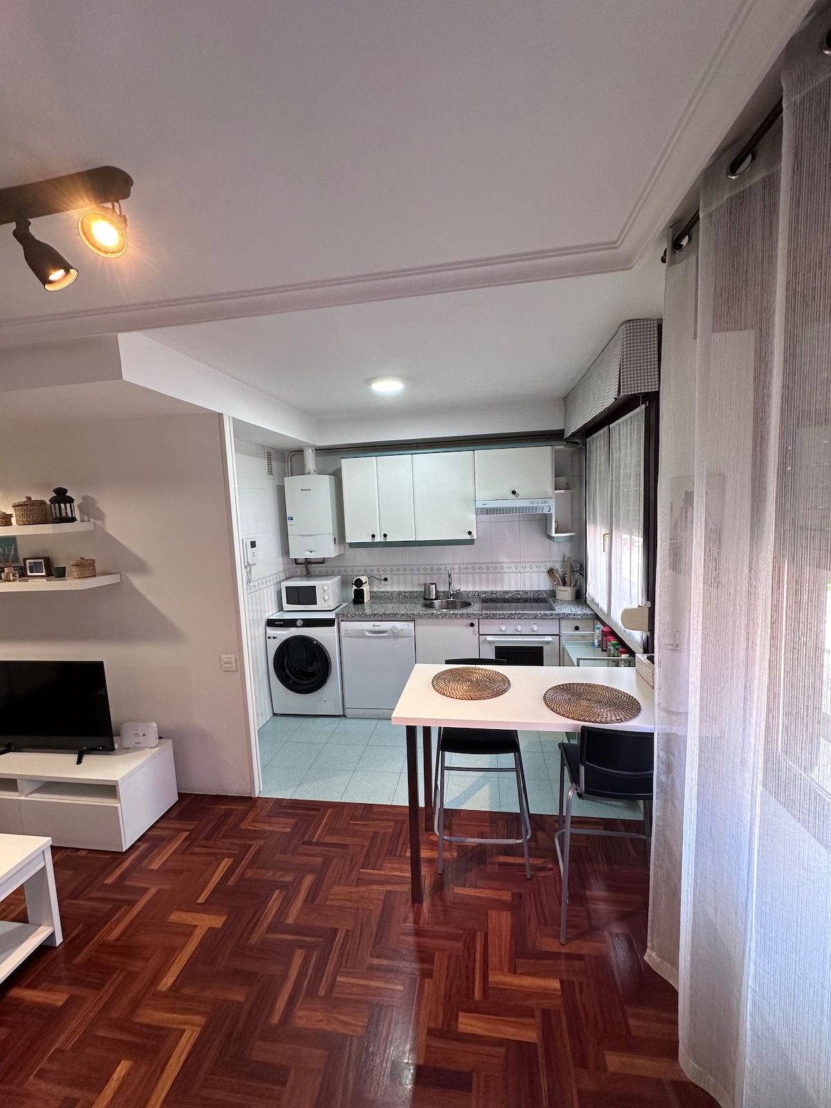 Piso luminoso y espacioso con WIFi, céntrico y cerca de la playa. Zona tranquila con parques, supermercados, restaurantes, transporte público... A tan sólo 50 metros de la estación de tren. Ideal para familias y grupos. Plaza de garaje mediana con cargo adicional de 10€/día. No están permitidas visitas ni el alojamiento de más personas de las indicadas en la reserva.