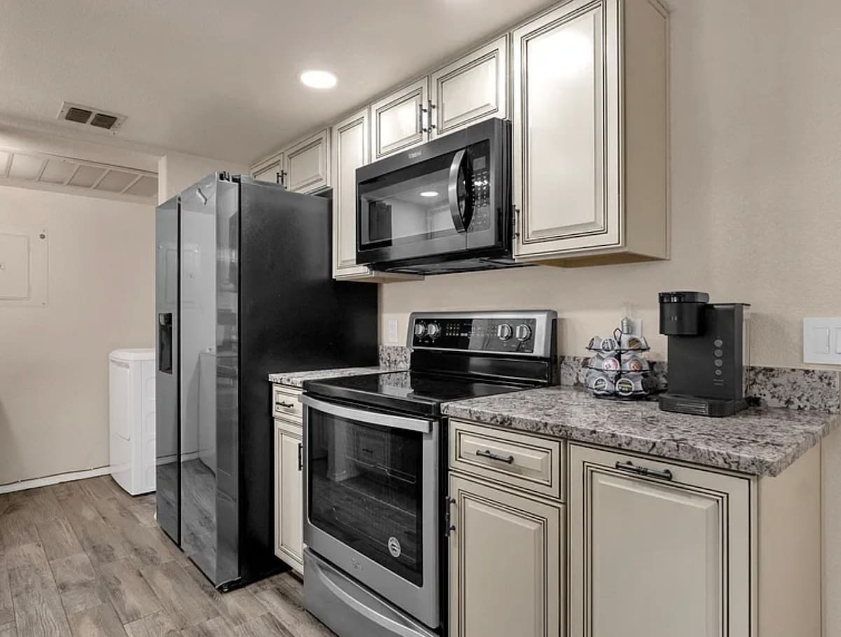 This is a beautifully REMODELED, tastefully furnished SPACIOUS 2 bedroom/2 bath FIRST floor condo in CLEAN and SAFE Alta Mesa. The unit has a WASHER and DRYER and is completely TURN-KEY. It has a PATIO VIEW out to the gazebo. The COMMUNITY POOL and GRILLS are a short walk from the unit. Plenty of restaurants, grocery stores, golf and spring training locations are close by. Minutes from HOSPITALS and FALCON FIELD.The owner/manager is a phone call, text or email away if you need any assistance.