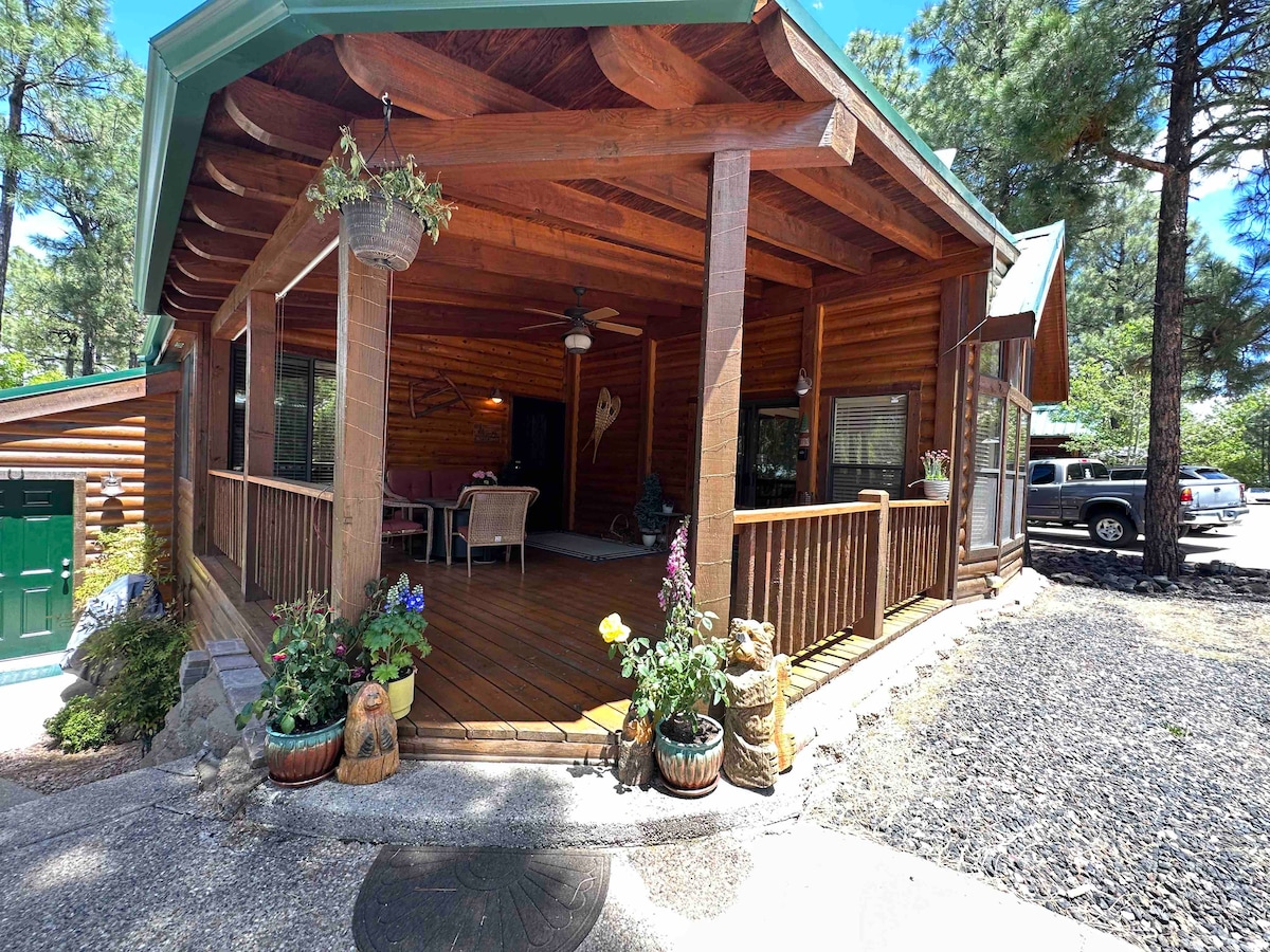 Welcome to the SORENSEN RETREAT located in the beautiful quaint town of Heber-Overgaard, AZ!! Escape the Valley heat and plan a stay at our uniquely remodeled 2 BR, 1 BA cabin located on 2.5 acres of gorgeous pine trees. Enjoy the many outdoor spaces including a large fire pit, bbq & hot tub. Experience hiking trails, fishing at local lakes, off-roading through the National Forest or just relaxing and decompressing from the hustle and bustle of life.