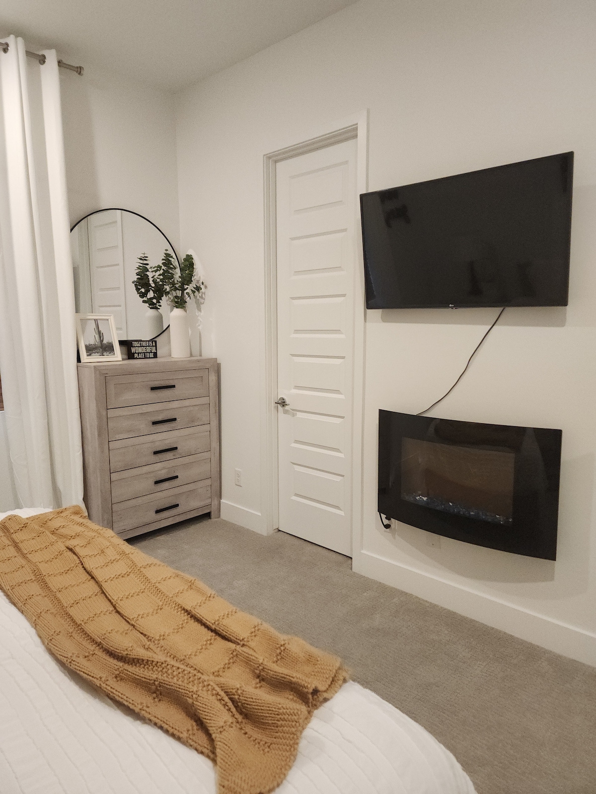 Cozy private guest suite in a quiet neighborhood. Private entrance with smart lock. King sized memory foam mattress in the bedroom and the couch can be turned into a full size bed. The room offers a mini fridge, microwave, Keurig, and a TV equipped with Roku for all your streaming needs. Conveniently located next to many shops, local restaurants, and only a short drive away from Bell Bank Park and the Mesa airport. Level 2 EV charging (14-50 NEMA socket, 50 amp breaker) accessible to guests!