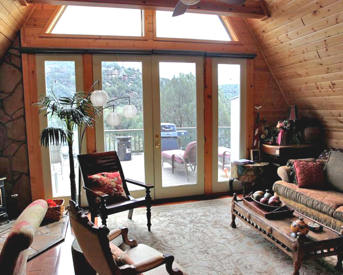 Spend days exploring Tonto Natural Bridge State Park or the Mogollon Rim! 🌄 Then head back to your cabin, open the garage door in the dining area, and enjoy a beautiful Arizona sunset. This Payson cabin is located directly on the East Verde River and you will hear the soothing flow of water from the deck. Step directly onto hiking trails or go fishing from your backyard. 🐟 Vinyl record player and cozy interior. This peaceful retreat will be the perfect spot to get some much-needed relaxation.