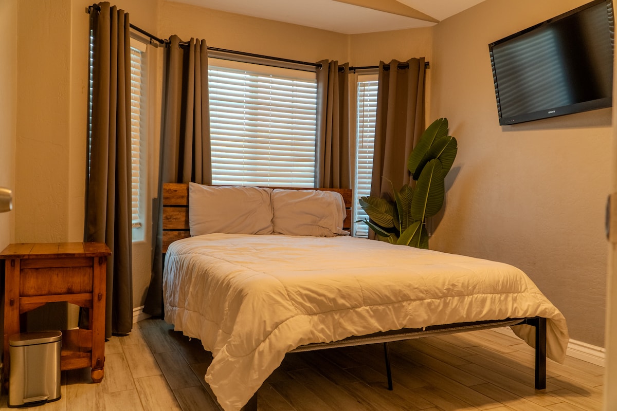 Discover serenity in this stylish, private studio casita with breathtaking mountain views. Perfect for solo adventurers, couples, or remote workers, it offers a cozy queen bed, private entrance, compact kitchen, and bath essentials. Ideal for 1–2 guests. Extended stay over 29 days? Reach out to Snowbird! Need wheels? Rent from our fleet! Contact us now! Booking discounts: Weekly discount 3% 3 day discount 1% 28+ days discount 10%
