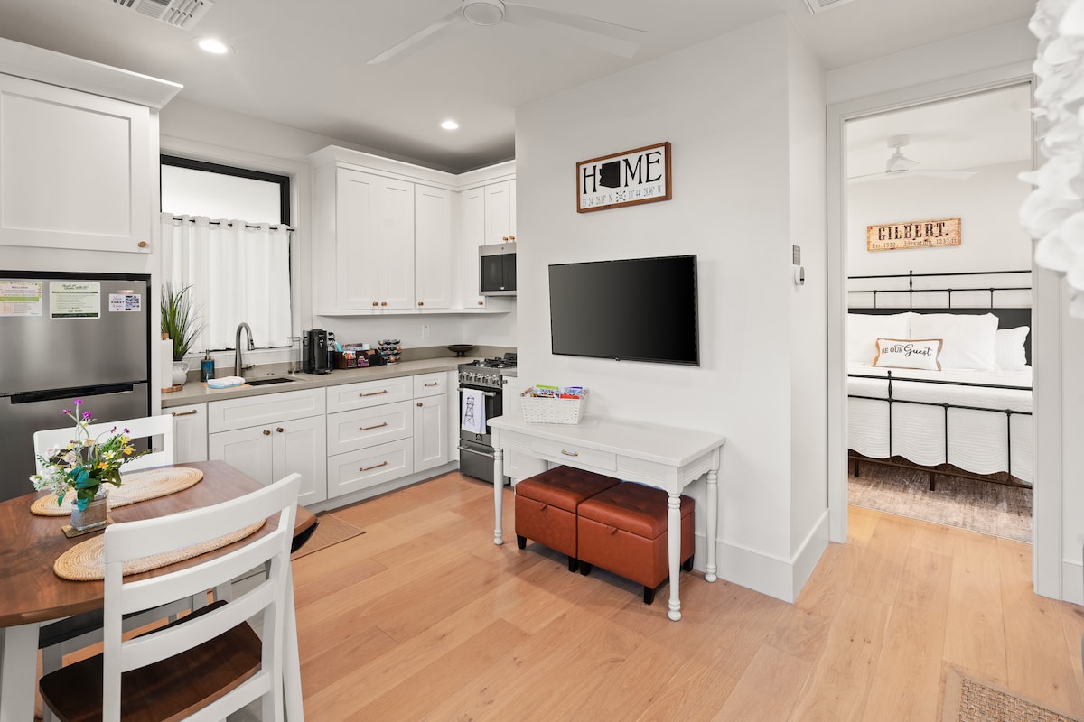 Enjoy this brand-new little guesthouse located in the heart of Downtown Gilbert- just one block East of downtown. This unique guesthouse features 1 bedroom (King bed) and 1 bath for a very personal feeling. The little patio is perfect for sitting and contemplating what you will want to do next in downtown Gilbert. You also have a full kitchen and family room if you'd like to stay in for the night!