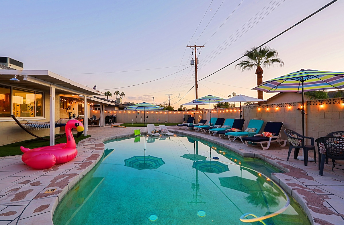 Welcome to my North Tempe retreat. With a great blend of comfort and entertainment you will have two spacious living rooms, chef's kitchen with all the appliances you need, heated pool (inquire for cost to heat), BBQ, putting green, pool table, and TV's in every room. Whether you are looking to relax by the pool or work on your short game this Airbnb promises an unforgettable stay. Perfectly located between 4 major baseball teams, the airport, ASU, and Old Town. This is your perfect getaway!
