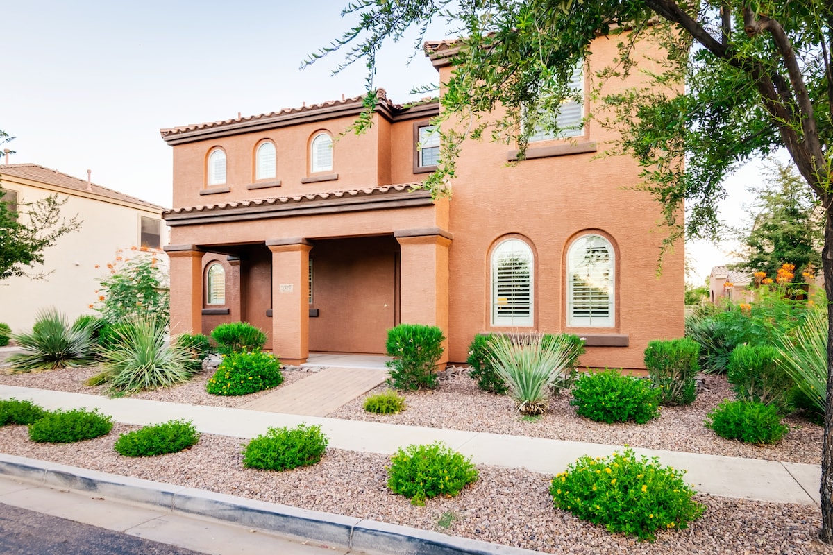 So much room for activities! Our reviews say everything. Everyone loves this gorgeous 5BD/3BA home. Heated pool & spa. Well-equipped chef's kitchen. Dedicated work space & gigabit Wi-Fi. Kid & dog friendly. Sleeps up to 12. 4 TVs w/ free streaming. Gas fireplace, BBQ, table tennis, PAC-MAN, cornhole & tons of games. Quiet neighborhood w/ parks & playgrounds. Near Gilbert Heritage restaurants. Don’t miss the farmer's market. Family fun. Memorable meals. Celebration. Relaxation. All for you.