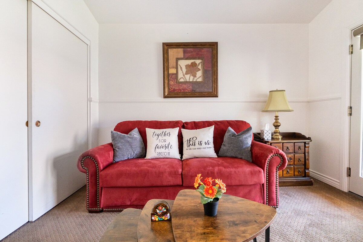 Relax in our fully furnished 2-BR guest house with a queen-sized bed and a living room with a sofa bed and leather recliner. Enjoy the privacy of a private bathroom with a bathtub & shower. Convenient amenities include a private entry, laundry room, garage parking, and a large patio with a BBQ grill. All utilities, 2 flat-screen TVs and internet, are included for a comfortable and worry-free stay. ✔ Fully Equipped Kitchen ✔ Patio ✔ Close to Downtown ✔ Private Parking Learn more below