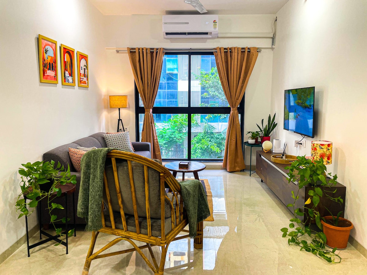 A centrally located 1 BHK apartment in Goregaon West Mumbai with metro station right on the door step. Nearby places include NESCO Centre, Infinity Mall Inorbit Mall, Lokhandwala. Only 10Kms from International airport with excellent east to west connectivity. Elegantly styled with friendly vibes furnished with all amenities for long and comfortable stay. Best suited for Families, corporates and crisp work stays. A fully equipped kitchen with optional househelp for home cooked meals and cleaning.