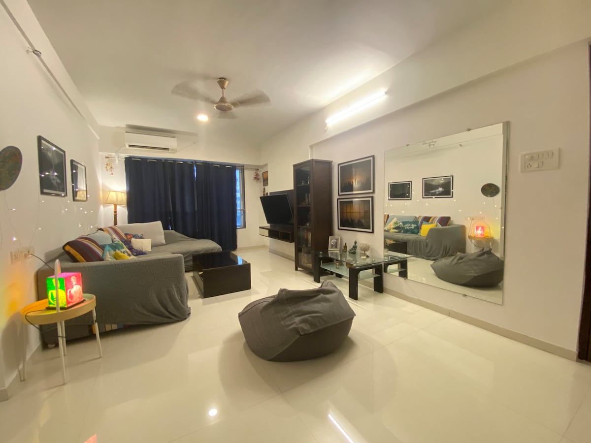 Its high rise tower of 36 story and our apartment is 28. Its a beautiful 2 Bhk apt at high rise tower newly built 2025 with society pool gym library.spacious and peaceful neat and clean place where you wont find Mumbai traffic voices, higher floor view. Note : “Only Indian nationals with valid government ID proof can be hosted, as per society guidelines.” “Just a quick reminder — as per house rules, only guests on the booking are allowed at the property. * Daily flat cleaning required