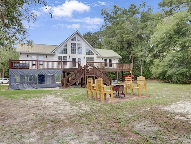 Cranes Landing is a stunning waterfront home on over a one-acre lot with the Suwannee River just a few steps away! This is a stylish place to stay and is perfect for group trips with accommodations for 6 guests. The 2 bedroom(1 with queen bunkbeds) 1 bath house has all the amenities your heart desires while making you feel at home. This property is also 5-10 min away from the nearest boat ramp with a private dock to hold any watercrafts plus all the amenities you would need.