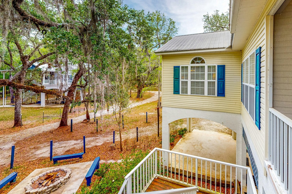 Welcome to our "Camp House." Riverfront on the Santa Fe river, this is our family home and we hope you will find it perfect for relaxing and exploring river life. We are located in Three Rivers Estates and 7 minutes from Ichetucknee Park South Entrance and near Ginny, Poe, and Rum Island springs. We have tubes for floating, and 2 kayaks. Enjoy a great deck, screened porch, and downstairs screened in room for a campy experience. We welcome a pet with an extra $40 cleaning fee.