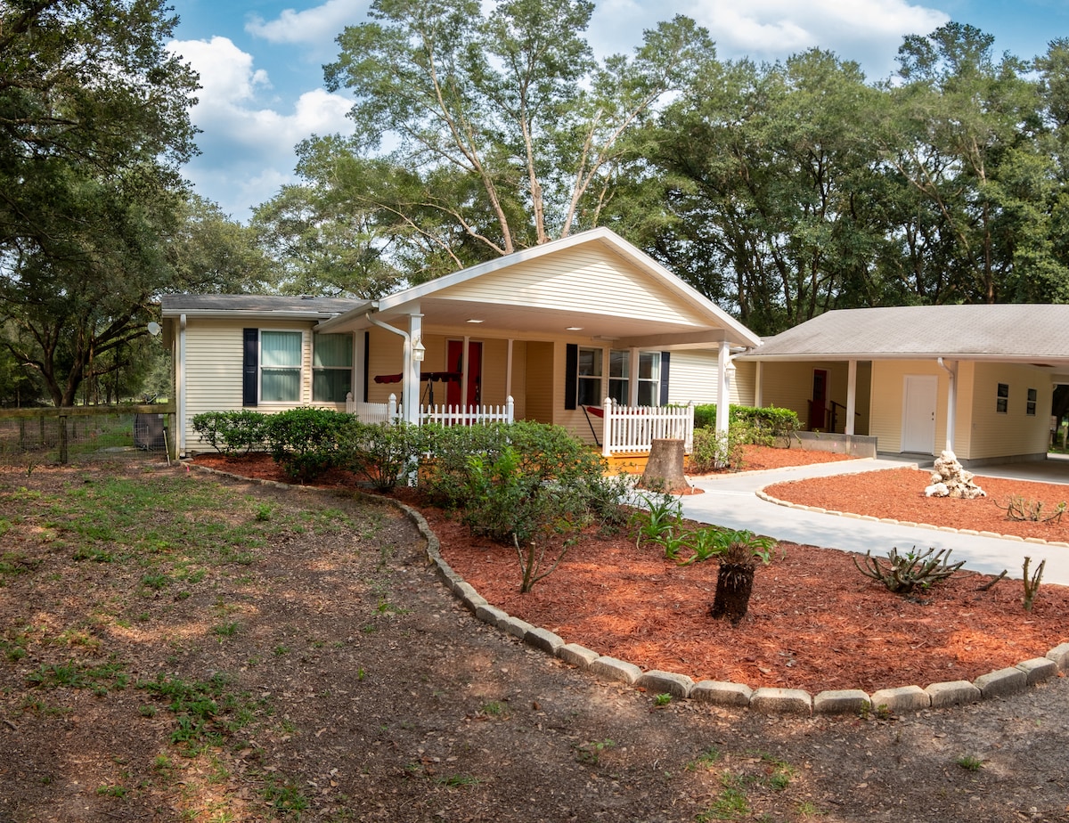 Relax with the whole family at this peaceful old farm house. Bring the puppies and the ponies too! Great option for equine vacations or layovers. Kick your boots off and relax. Minutes from Fanning, Otter, Hart & Rock Bluff Springs, Itchetuknee and Ginnie Springs. HITS and WEC, state parks with horse trails within 30+ minute drive. Laid back country life in A great farming community.