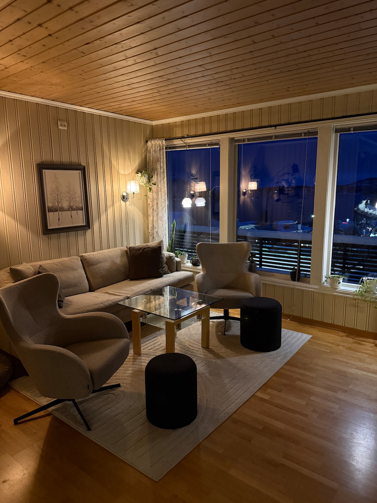 Neverdal is located in Meløy, between Bodø and Mo i Rana. Here you can experience the Svartisen glacier, two national parks, mountains for both winter and summer use and a fantastic archipelago with several inhabited islands. The apartment is located 9 km from the municipal center Ørnes, and it is 11 km to the industrial site Glomfjord. We offer a patio with a fire pit and a large garden to frolic in.