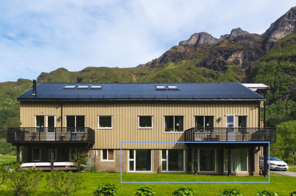 Boligen ligger i idylliske Storvik, direkte ved den 1,5 km lange Storvikstranden og bare 50 m fra havet.Omgivelsene er hav, fjell, sandstrand og fiskevann. Her kan du nyte en aktiv ferie med fjellturer, padling, bading eller sykling. Vil du bare slappe av er den store terrassen perfekt for soling og grilling eller å bare koble av med en god bok. Her har du alt du trenger for en komfortabel ferie. Er været dårlig har du panoramautsikt til naturelementene innenfra.