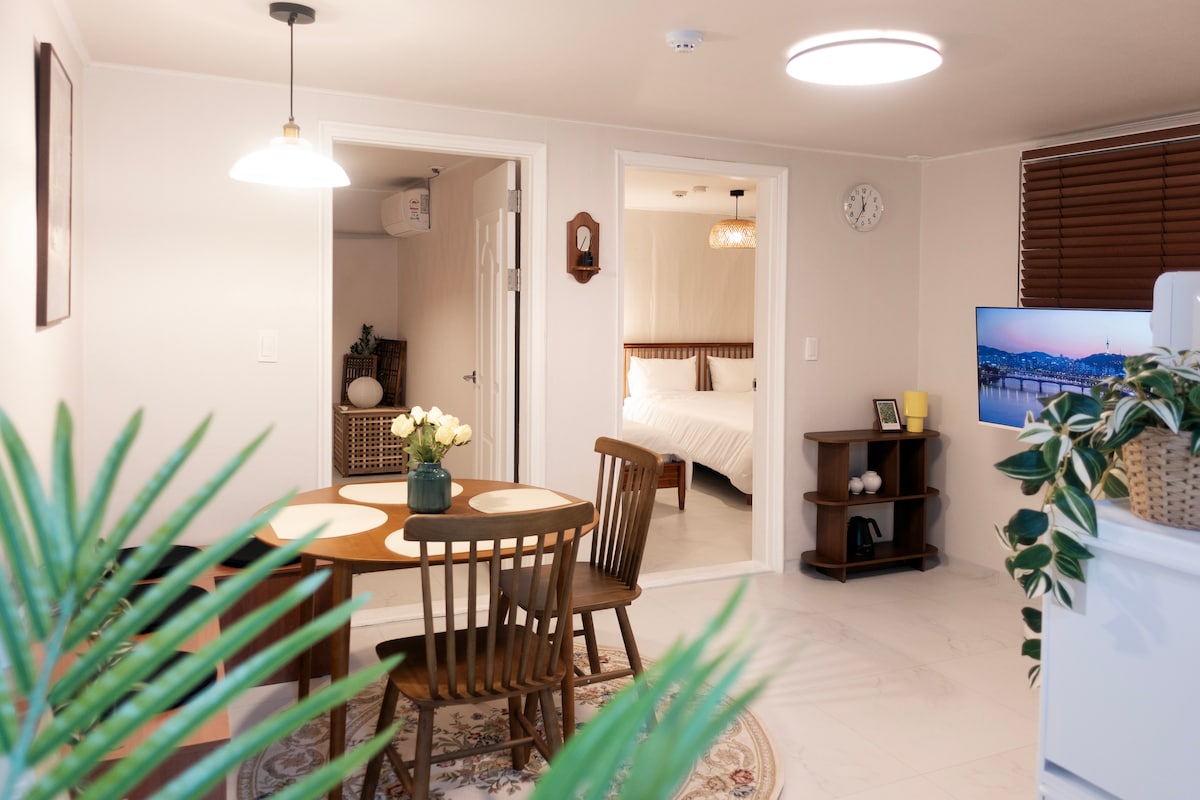 [3间客房+2间浴室]宽敞的客厅和房间,距离上水站5分钟,步行10分钟即可到达弘益大学