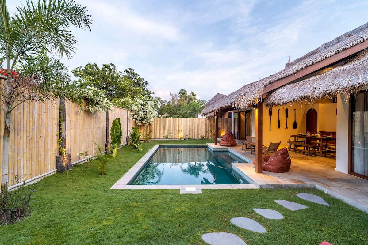 Escape to paradise in our luxurious 3-bedroom, 3-bathroom villa on the tranquil island of Gili Air. Take a refreshing dip in your own secluded pool, surrounded by lush gardens and enjoy the modern amenities of the villa, including western kitchen, AC, wi-fi and smart TV with Netflix. The villa is in the centre of the island, which means you'll be just minutes from the beach, restaurants, and shops, yet nestled in a peaceful area for ultimate relaxation.