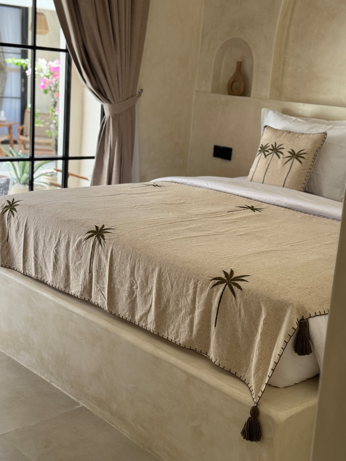 Our boho-style cottages each feature a private indoor bathroom with a walk-in shower, a king-size bed, and a private garden for ultimate relaxation. Enjoy the large pool with bean bags and sun beds, and visit our bar for breakfast (included) or a refreshing drink. The décor is light, cozy, and bohemian, with plenty of cushions for added comfort.