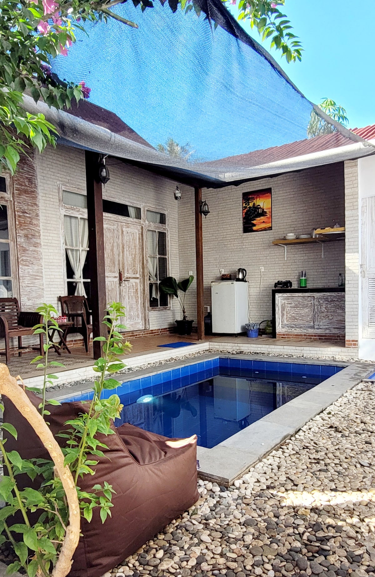 Située au Nord de Gili Trawangan, Jawa House vous accueille dans sa villa privée avec piscine. Ici le temps s'est arrêté . Vous allez adorer ce paradis arboré, ce lieu paisible avec la plage a seulement 5 minutes a vélo. Sur l'ile, pas de voiture ! On se déplace a pied ou a vélo. Ca fait parti du charme de Gili T ! Notez que les scooter électrique sont interdits à la location. Chaque matin, votre petit déjeuner est servi sur votre terrasse avant de commencer votre journée au rythme de l'ile.