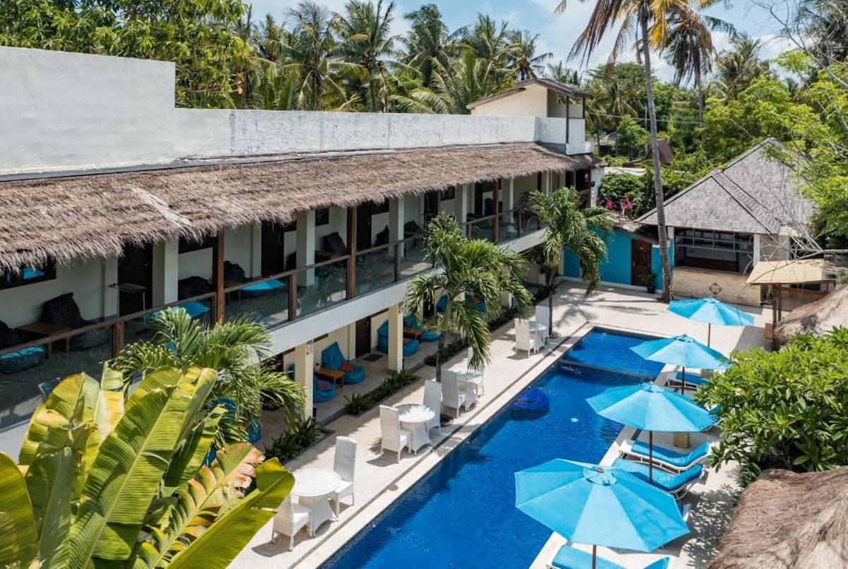 An exclusive offering for those seeking a breathtaking tropical experience on the island of Gili Air. Offering unparalleled ocean panoramas. Enjoy the comforts of air conditioning, a private bathroom, a personal seating area, and friendly room service. Its strategic location allows you to explore the beauty of Gili Air.