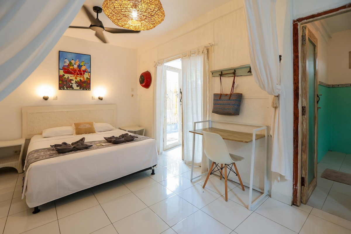 Relax at Sahara Sands Guesthouse, just a 2-minute walk from Gili Trawangan’s beautiful Turtle Point Beach. This bright, airy one-bedroom studio offers a peaceful retreat with a private entrance, ensuite bathroom, and A/C. Ideal for couples or solo travelers looking to unwind while staying close to the island’s best snorkeling, cafes, and natural beauty.