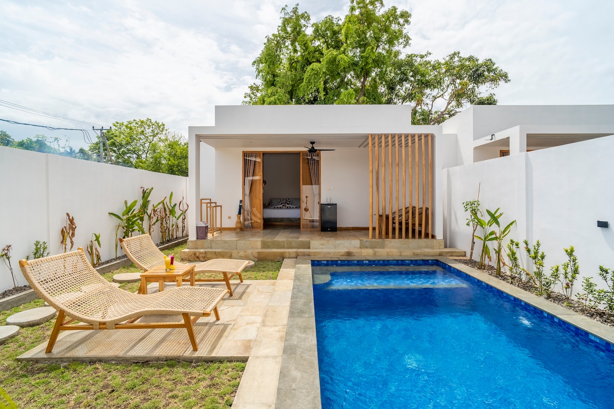 Welcome to Villa Teman, your private sanctuary on Gili Air. This brand-new one-bedroom villa blends warm teak finishes, soft lighting, and a soothing atmosphere designed for slow island living. Enjoy a private pool, tropical garden, and peaceful outdoor spaces, all just a five-minute walk from the beach and its stunning sunsets. With natural textures, thoughtful details, and complete privacy, Villa Teman offers a retreat where you can unwind, recharge, and enjoy the rhythm of island life.