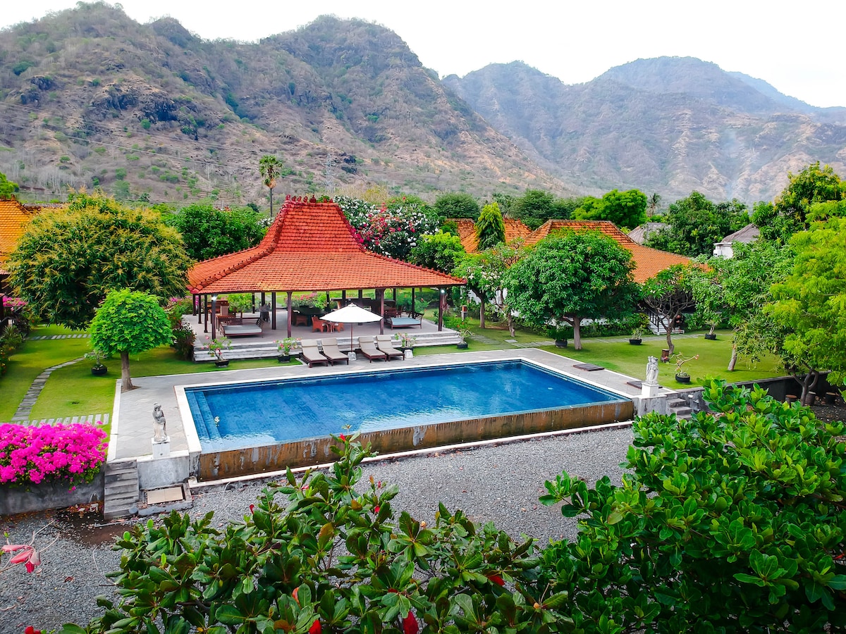 Discover serenity at the Sumberkima Hill Retreat, a peaceful escape in Bali’s seaside village Sumberkima, near Pemuteran and Menjangan Island—a diver’s paradise. Enjoy stunning views of Hills, Bay and Java's volcanoes. Dine at two restaurants featuring local and international flavors, unwind with yoga, spa treatments, and relax in our sauna or invigorating ice baths. Our team is ready to arrange excursions, wellness sessions, and more to immerse you in Bali's natural beauty and vibrant culture.