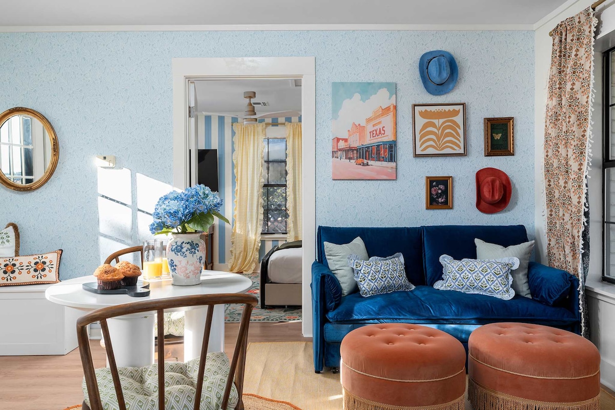 Experience a modern retreat at No. 6, a cozy stay with a private courtyard and hot tub in Fredericksburg, Tx. - Studio-style suite with king bed and gas fireplace - Relaxing atmosphere with a private getaway feel - Kitchenette with mini-fridge and coffee-maker - Outdoor courtyard with hot tub and lounge seating - Complimentary Wifi access - Check in at 4 PM, Check out at 11 AM (early check in available for a fee on request) - No pets, no smoking in unit Follow us on social! @porchlightfbg