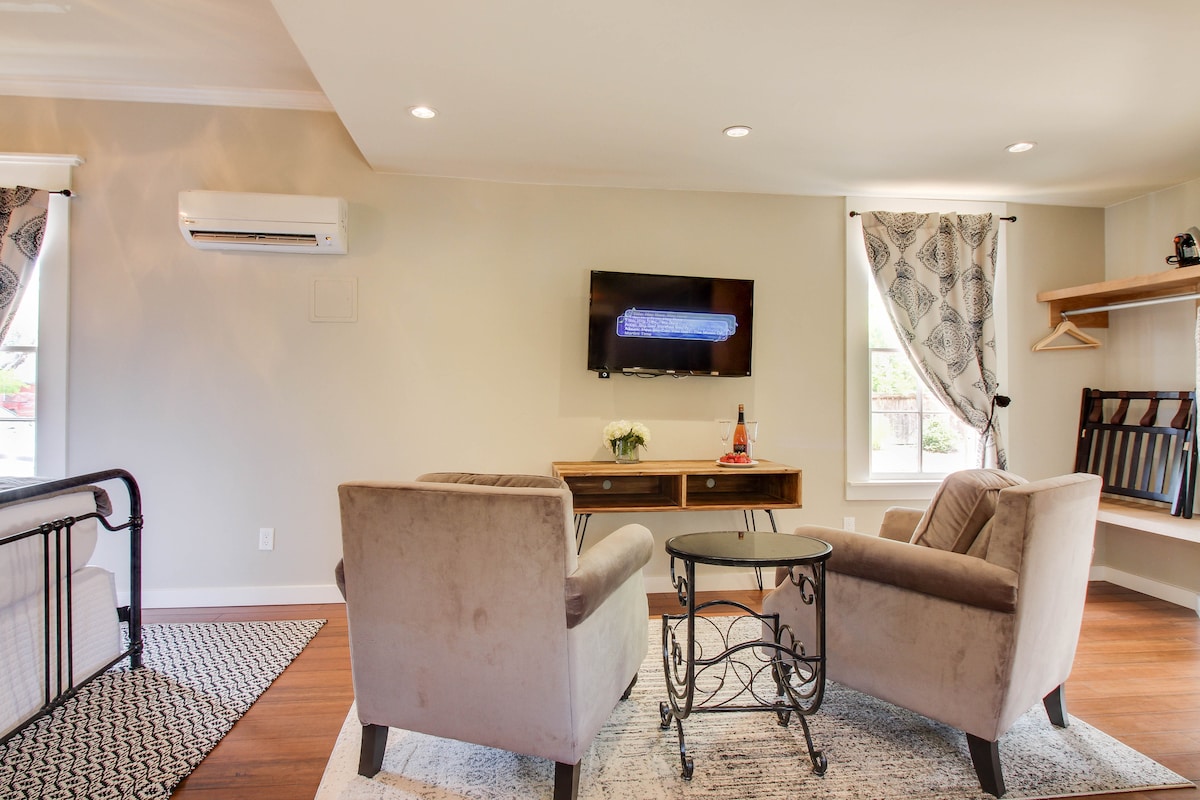 Book NOW for the ultimate Superhost experience! Proud Superhosts for 5 years, we temporarily lost Superhost status due to being shut down for a year-long remodel of the property in 2024. The Barnhouse is an architect & history lover's dream! Settled at the back of the private, gated ranch, you'll enjoy the large fire pit (firewood incl!) & massive patio. 8 mins to downtown, escape the hustle & bustle fireside when sunset turns into a massive star-filled sky!