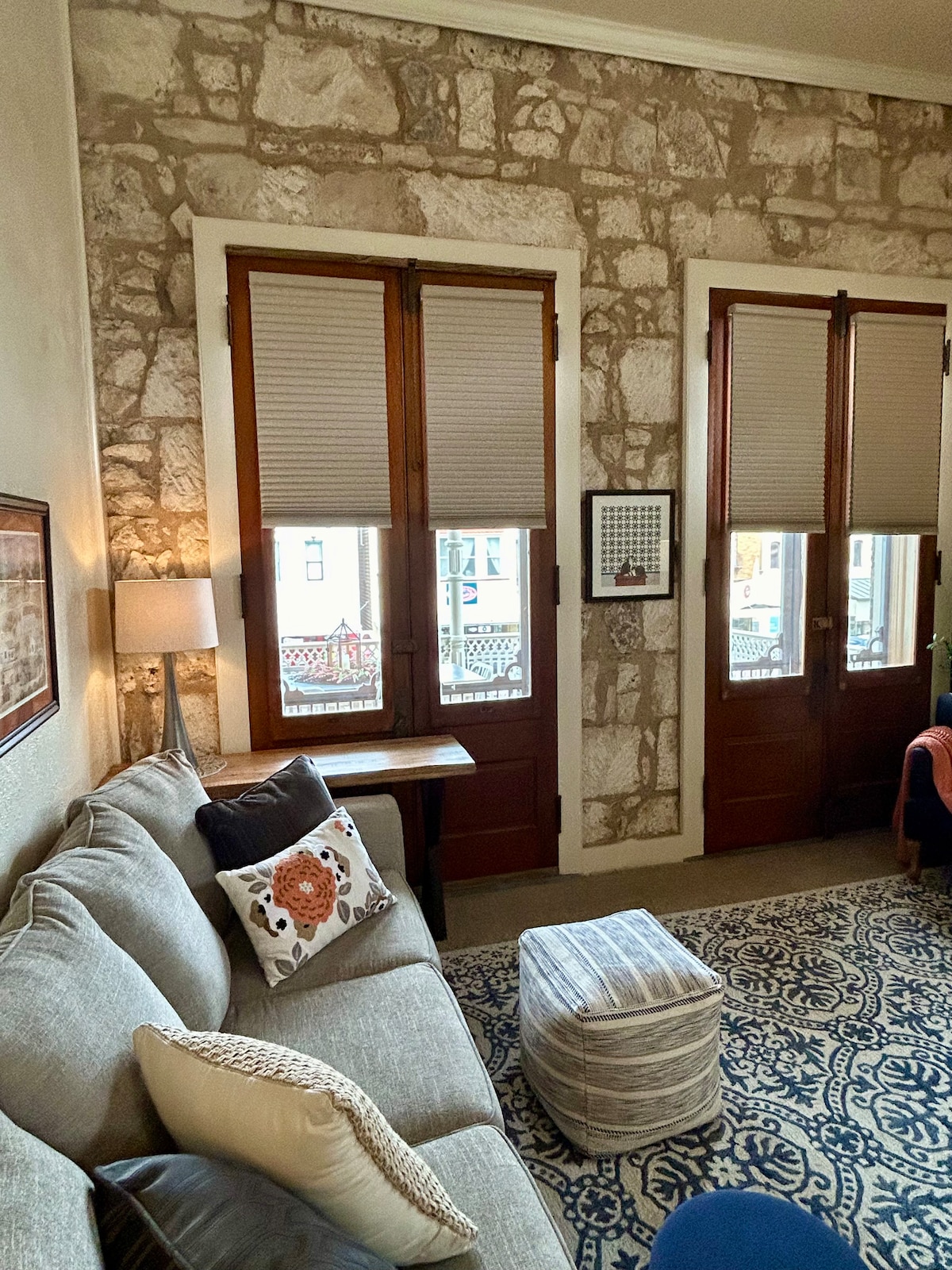 This charming 1940s Sunday house sits on two private acres between downtown Fredericksburg and the 290 Wine Trail. With its own gate and wood-burning fireplace, enjoy sunsets on the front porch, peaceful mornings with coffee, and wildlife viewing. The vintage-inspired living room and kitchen add cozy character. Conveniently located: 5 mi. from Luckenbach, 1 mi. from Bankersmith, 10 min to the Wine Trail, and 10–15 min to downtown Fredericksburg.