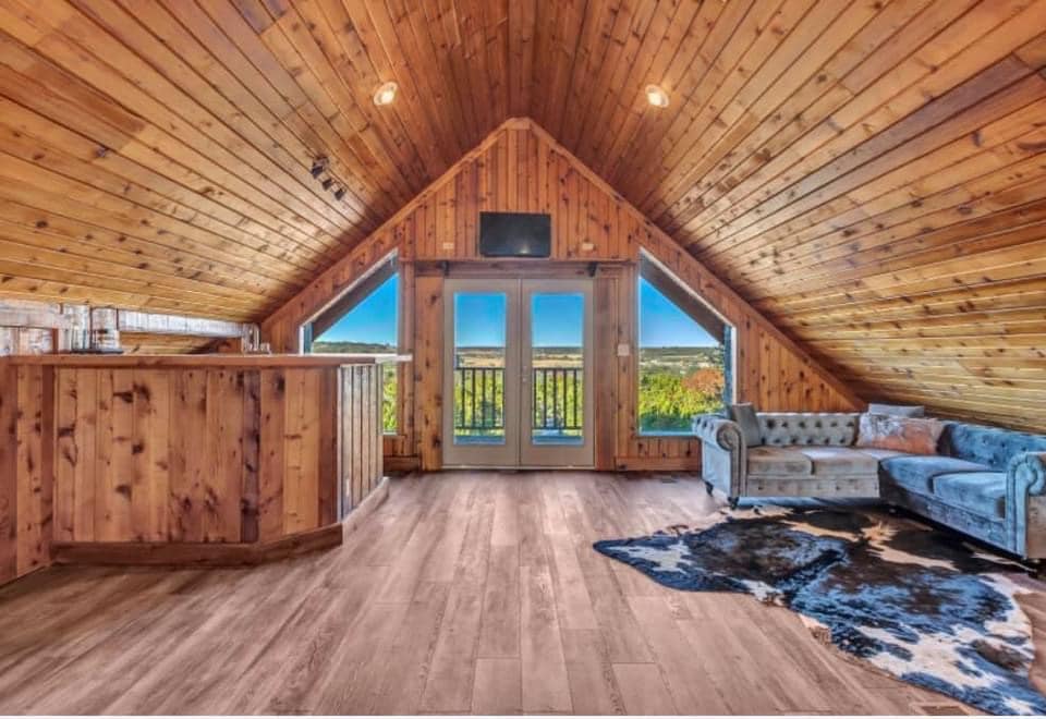 The Pedernales A-Frame epitomizes luxury... Nestled on an expansive 8-acres bordering the serene Pedernales River and positioned atop a tranquil hill, this cabin boasts sweeping vistas of the picturesque Texas Hill Country. Its interior exudes opulence with exceptional craftsmanship, acclaimed design, premium amenities, and a wealth of luxurious finishes that cater to even the most discerning tastes. We look forward to having you...