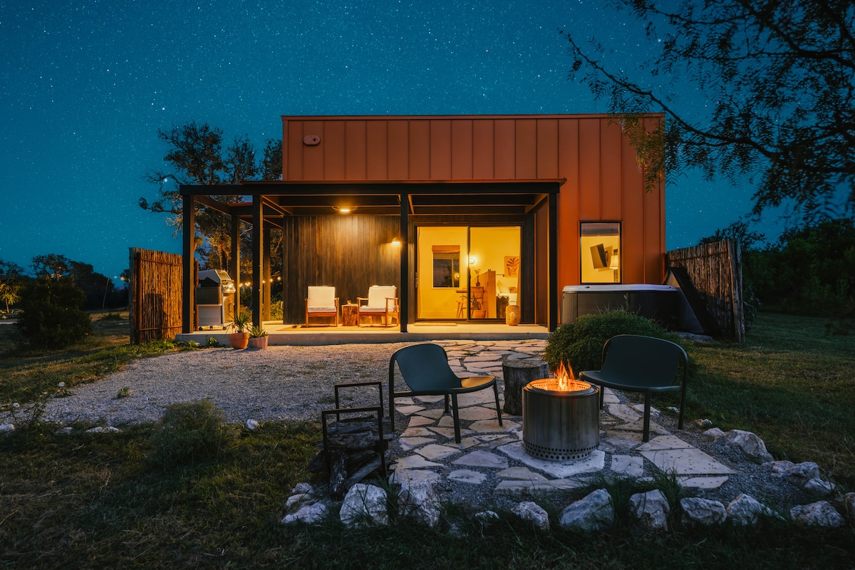 ROAM is a beautiful home constructed of two repurposed shipping containers complete with nearly 1000 sq ft of deck area, great views, micro cows, and rooftop hot tub! This is the perfect place for your vacation, located right on the 290 wine trail and just outside of Fredericksburg city limits - a short drive to downtown . Spend a unforgettable holiday in the enchanting surroundings of the town of Fredericksburg, the perfect place if you like small town charm and hospitality.