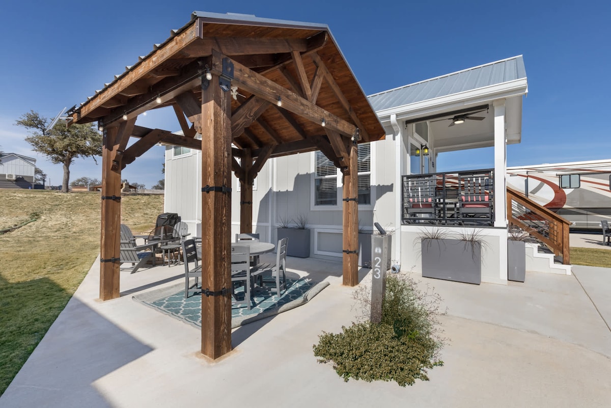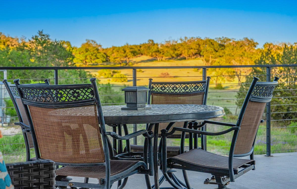 Escape to a modern A-frame treehouse just outside Fredericksburg. Nestled on 17 acres, The Mesquite Cabin offers Hill Country views, stargazing, and deer sightings, yet you’re minutes from Main St. Swim in the container pool, gather at the fire pit, or simply unwind on your private balcony. Inside, enjoy a king bed, rainfall shower, luxe linens, and modern amenities. The perfect blend of nature and comfort awaits.