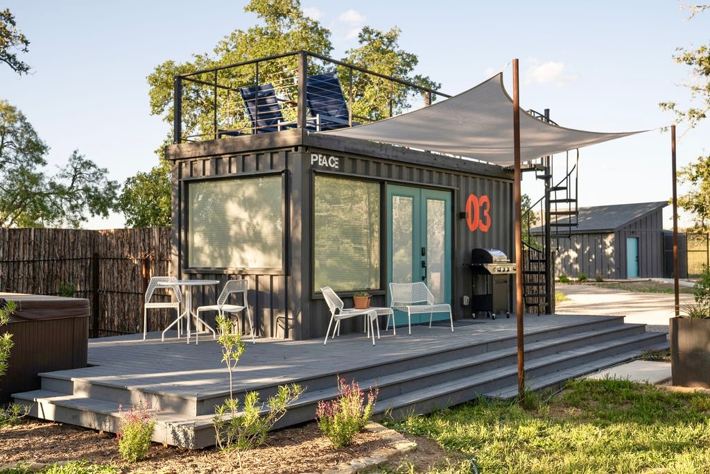 ROAM is a beautiful home constructed of two repurposed shipping containers complete with nearly 1000 sq ft of deck area, great views, micro cows, and rooftop hot tub! This is the perfect place for your vacation, located right on the 290 wine trail and just outside of Fredericksburg city limits - a short drive to downtown . Spend a unforgettable holiday in the enchanting surroundings of the town of Fredericksburg, the perfect place if you like small town charm and hospitality.