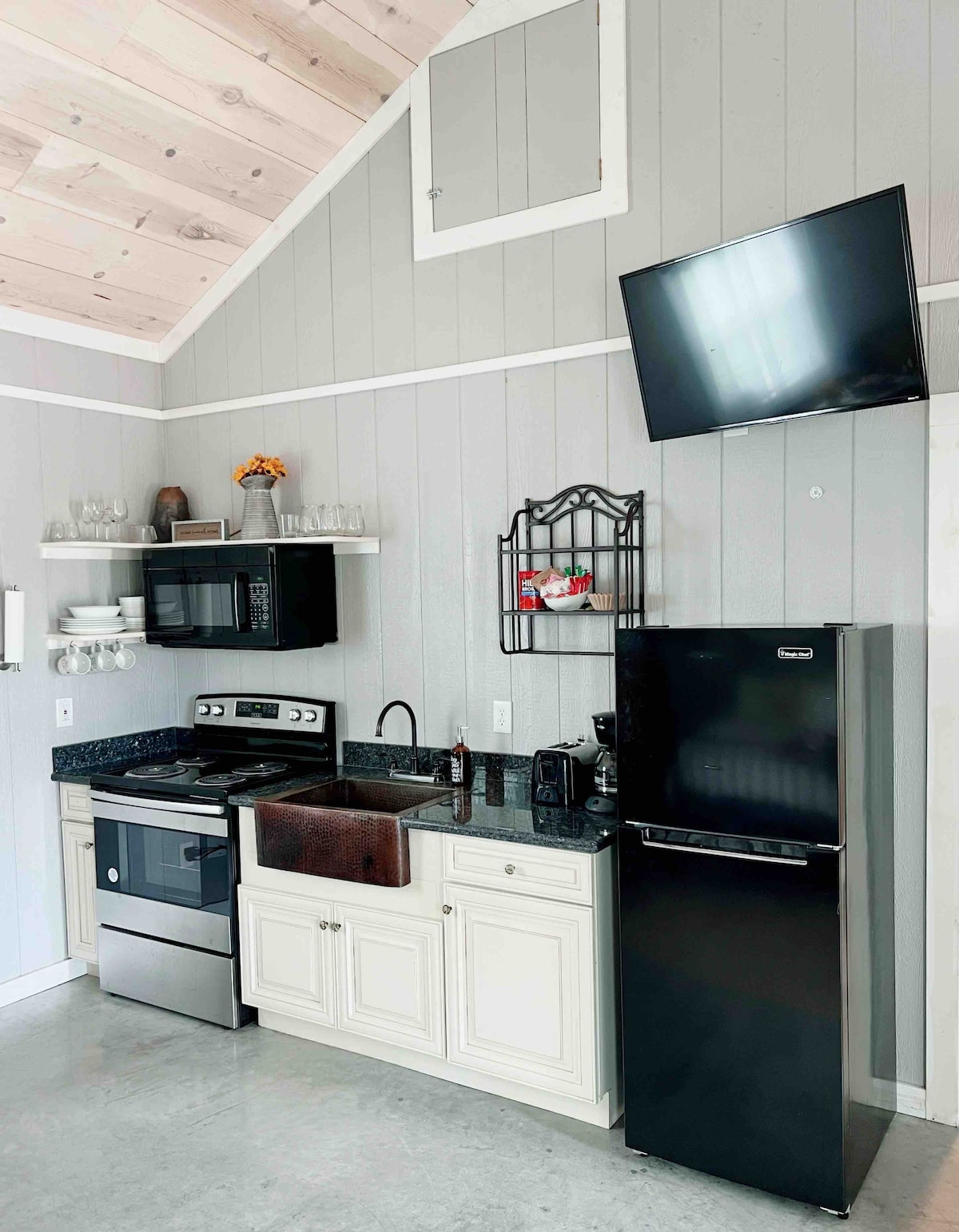 Waking up to stunning views from the amazing front porch will take your worries away! This is one of the largest tiny homes in the area and comes fully equipped with a spacious kitchen, a giant walk-in shower, and an oversized TV inside! Sit by the outdoor fire pit and watch the deer. This place is magical for those who value nature and a gorgeous view! We are located a short fifteen-minute drive from downtown Fredericksburg.