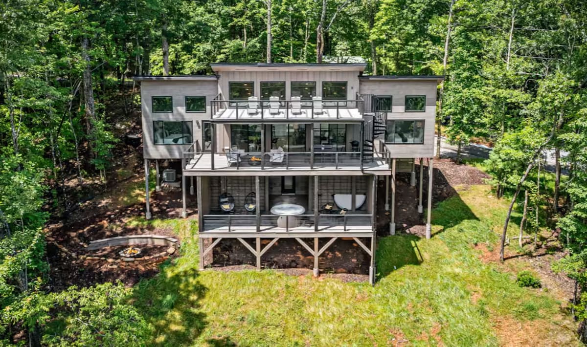 ATLAS Pond House is a brand new Scandinavian-style barn-house perched on the banks of a natural pond. This luxurious spa-like retreat offers three full bedrooms, two full bathrooms plus a unique bunk bed nook. In addition, there is an expansive outdoor space with hot tub, fire pit and grill to make the perfect mountain getaway. Minutes from downtown Ellijay and local wineries. ATLAS is a collection of three unique luxury cabins nestled in the foothills of the Blue Ridge Mountains.